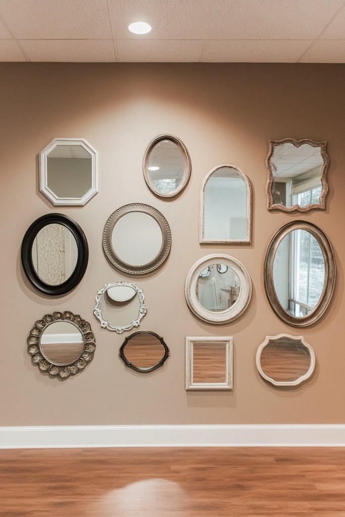 4. Mirror Gallery Wall with Diverse Shapes
