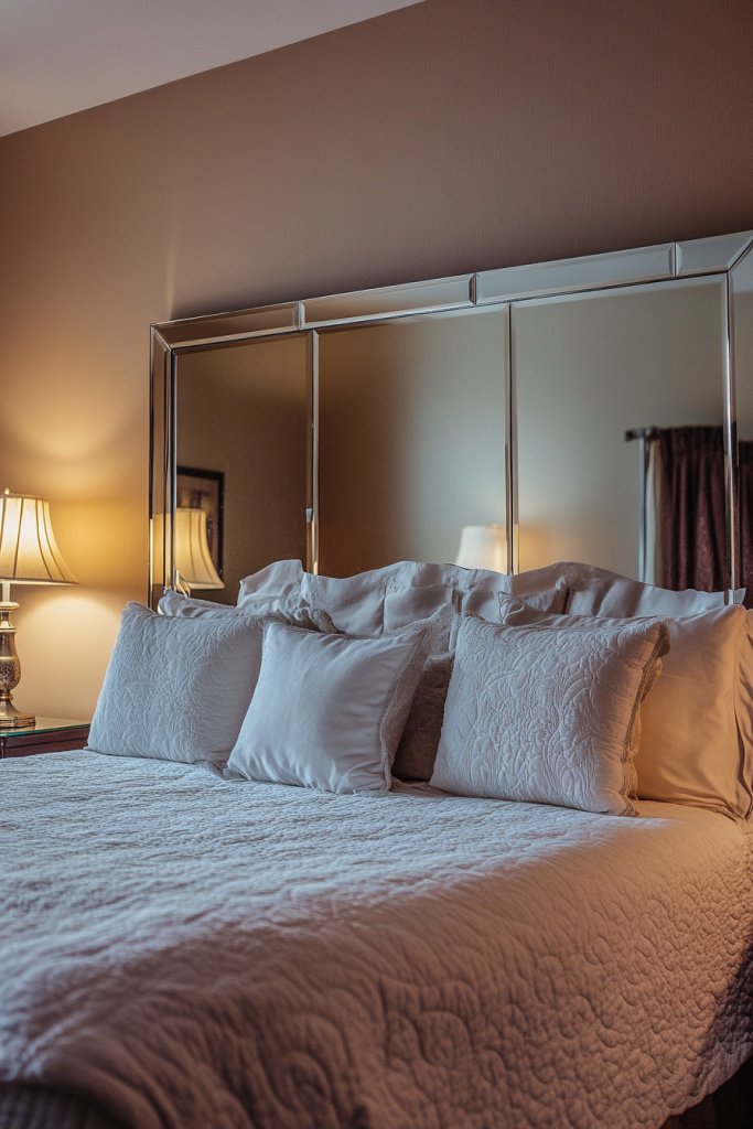 Ever wish your bedroom felt more luxurious without a complete overhaul? A mirrored headboard adds instant glamour and depth, making your sleeping space feel opulent. It’s perfect for those who want a statement piece that doubles as a functional focal point. This idea turns an ordinary bed into a high-end retreat.