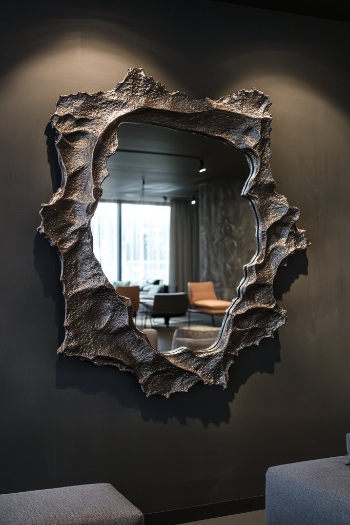Want to add a touch of artistry to your reflective decor? Mirrors with textured or sculptural frames serve as both functional surfaces and eye-catching art pieces. They turn a simple mirror into a statement that captures attention and sparks conversation. Perfect for those wanting to blend form and function.