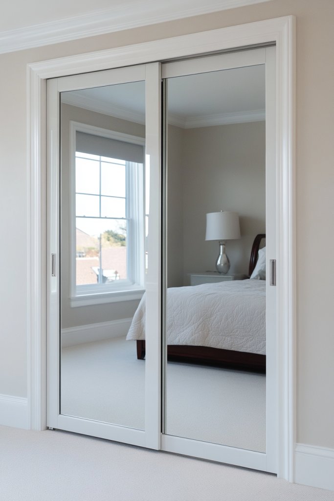 Add decorative hardware or handles that match your room’s theme. Consider tinting or frosted films for a subtle variation. Decorate the surrounding wall with art or textured finishes to complement the mirrored doors. Regular cleaning and occasional touch-ups keep the reflective surface flawless.