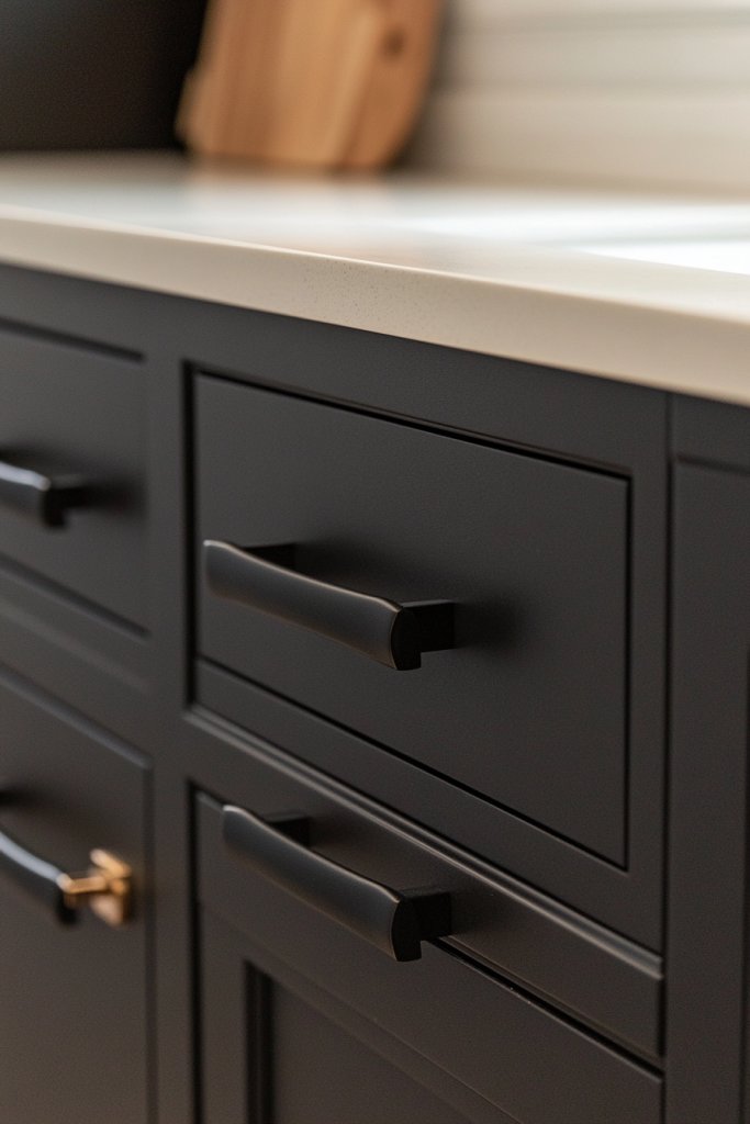 9. Minimalist Black or Brass Hardware for Cabinets and Drawers