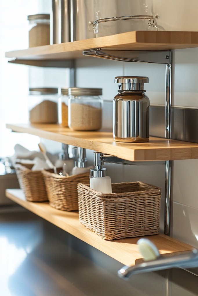 Open-frame shelving combines form and function, making your space feel organized and inviting. It’s an easy upgrade that adds rustic charm and practicality. Once you see how well your essentials are displayed, you’ll be eager to expand throughout your home. Ready to organize with style?