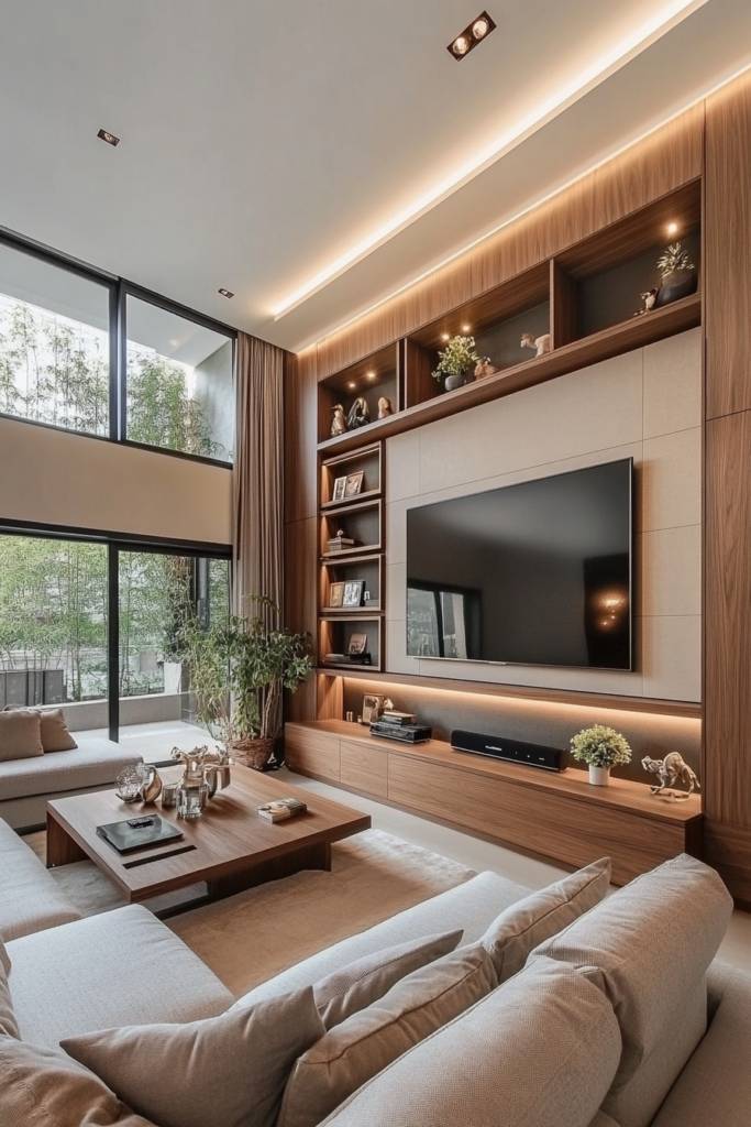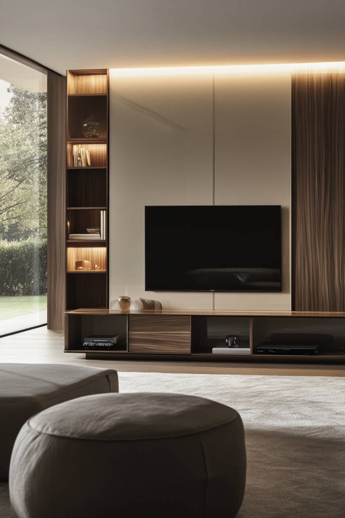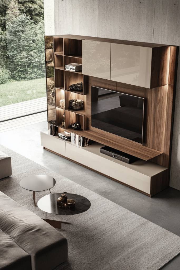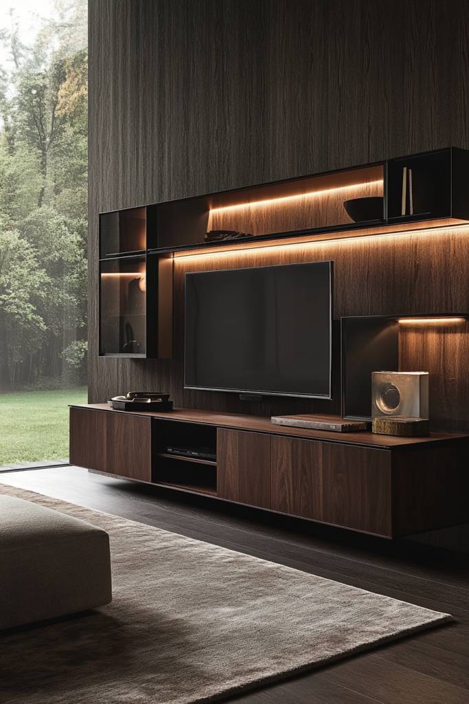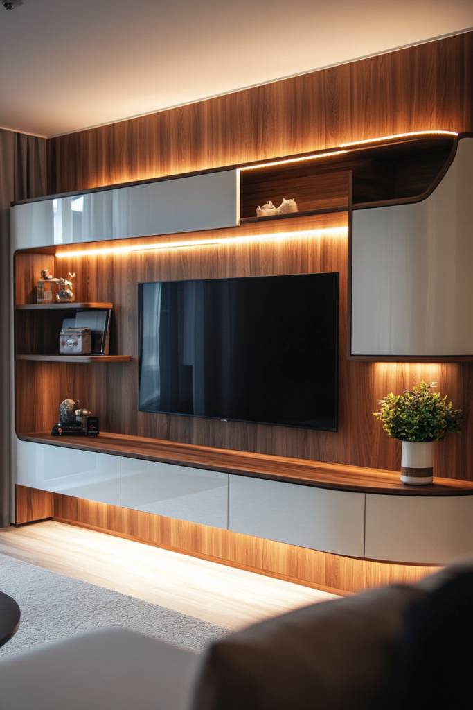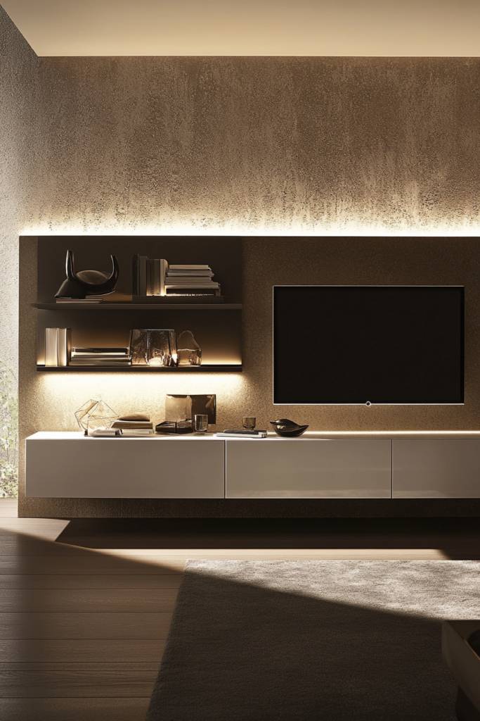 How can you transform your living space into a modern oasis while enjoying the latest tech? Consider tech-integrated smart units that blend style with functionality. Imagine sleek cabinetry that houses your TV, audio systems, and smart home devices, all seamlessly connected and controlled with a single remote or app.