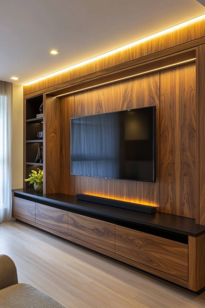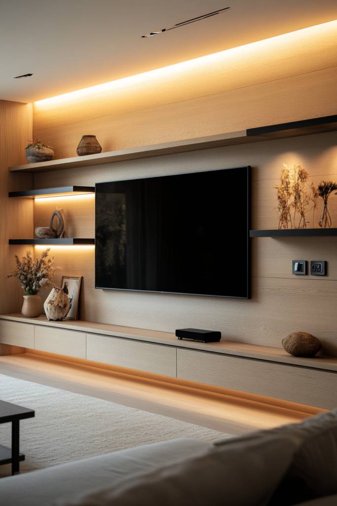 When you’re looking to elevate your TV wall unit, artistic wall panel designs can make all the difference. These panels not only frame your television beautifully but also serve as a stunning focal point. Consider bold geometric patterns or textured materials like reclaimed wood or metal to give your space a unique touch.