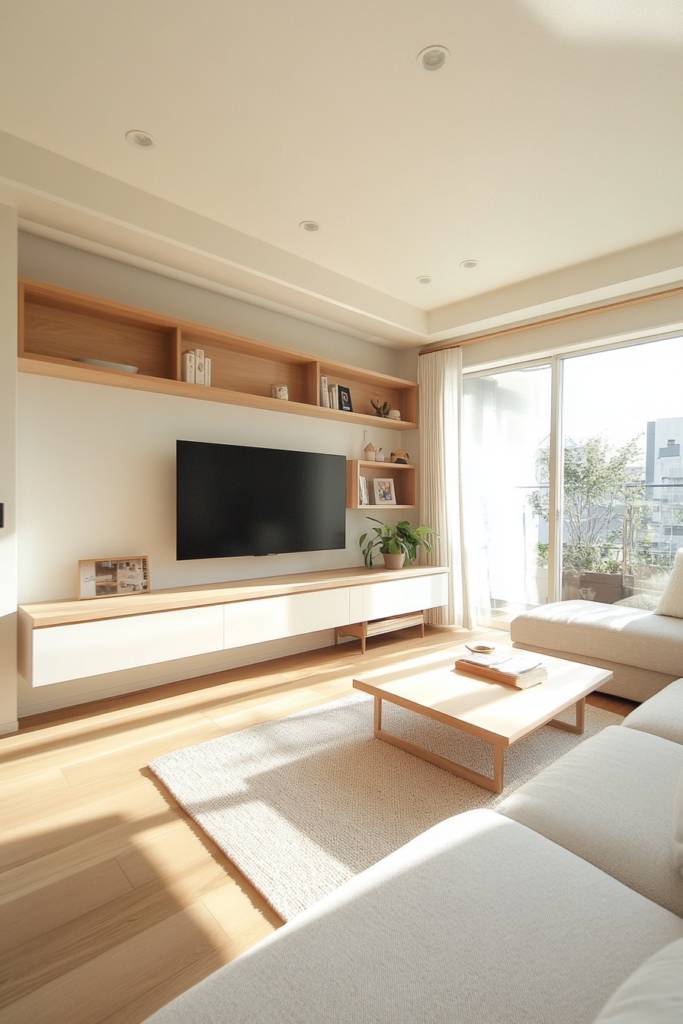 Consider incorporating floating shelves that not only display decor but also hide smaller items in decorative boxes. A pull-out drawer or a lift-top coffee table can serve dual purposes—providing surface space while offering hidden compartments.
