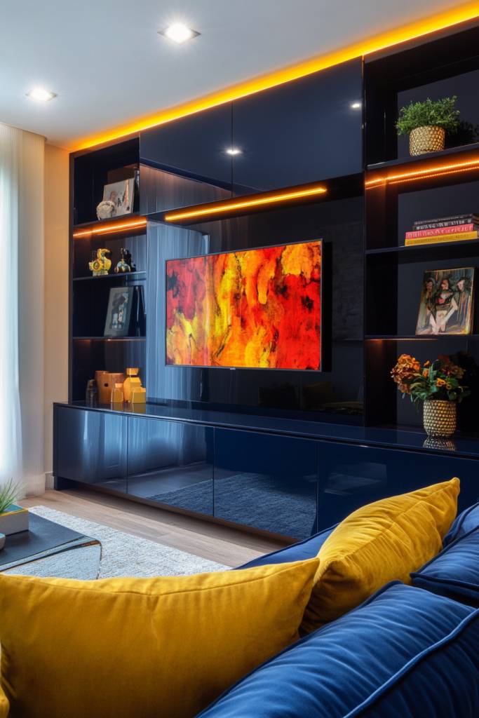 A splash of bold color can instantly elevate your TV wall unit from ordinary to extraordinary. Imagine a striking teal backdrop that frames your entertainment center, making your TV pop while adding personality to the room. Instead of sticking with muted tones, consider vibrant hues like fiery red or deep navy for shelves or cabinets. These colors create a dynamic visual contrast against neutral walls, drawing the eye and sparking conversation.