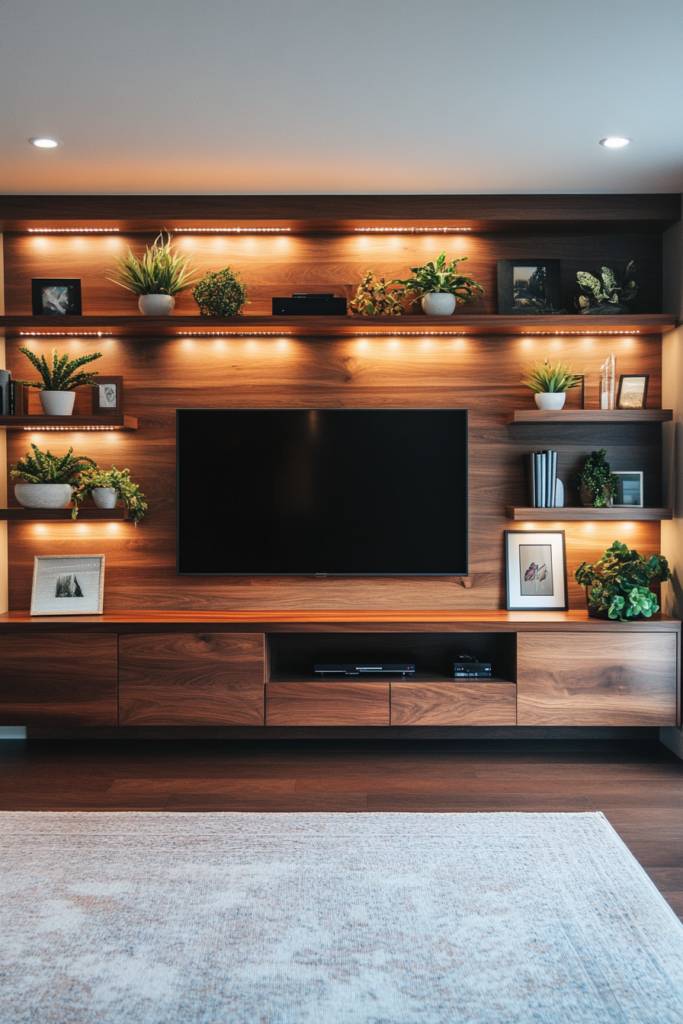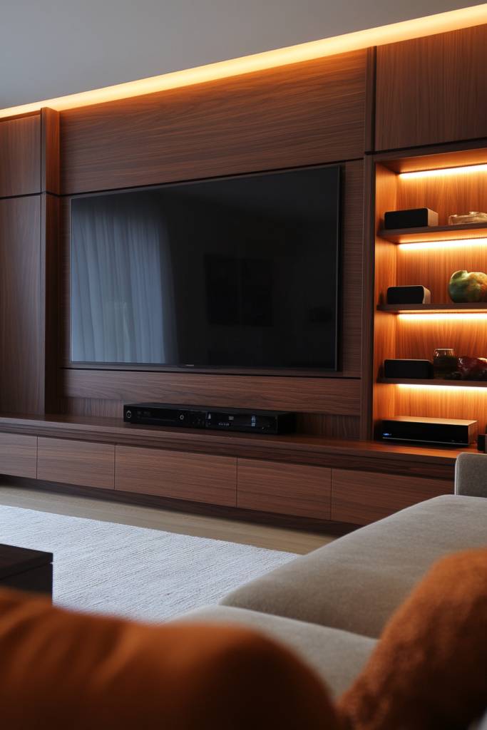 Strategically placed lights can highlight your favorite decor or artwork, transforming a simple wall unit into a stunning focal point. Plus, with options like dimmers, you can easily adjust the ambiance for different occasions. Whether you prefer a sleek, modern look or a cozy, warm atmosphere, integrated LED lighting adds a layer of sophistication and functionality. It’s about blending technology seamlessly into your design while enhancing the emotional impact of your entertainment space.