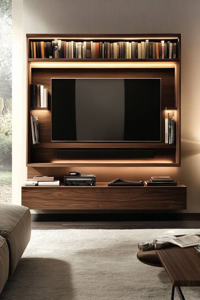 A dual-purpose TV and bookcase combo not only maximizes your space but also adds a touch of sophistication to your living area. Imagine a sleek, modern unit that elegantly displays your favorite books while providing a perfect spot for your TV. This stylish solution balances functionality with aesthetics, making it ideal for smaller spaces or minimalist designs.