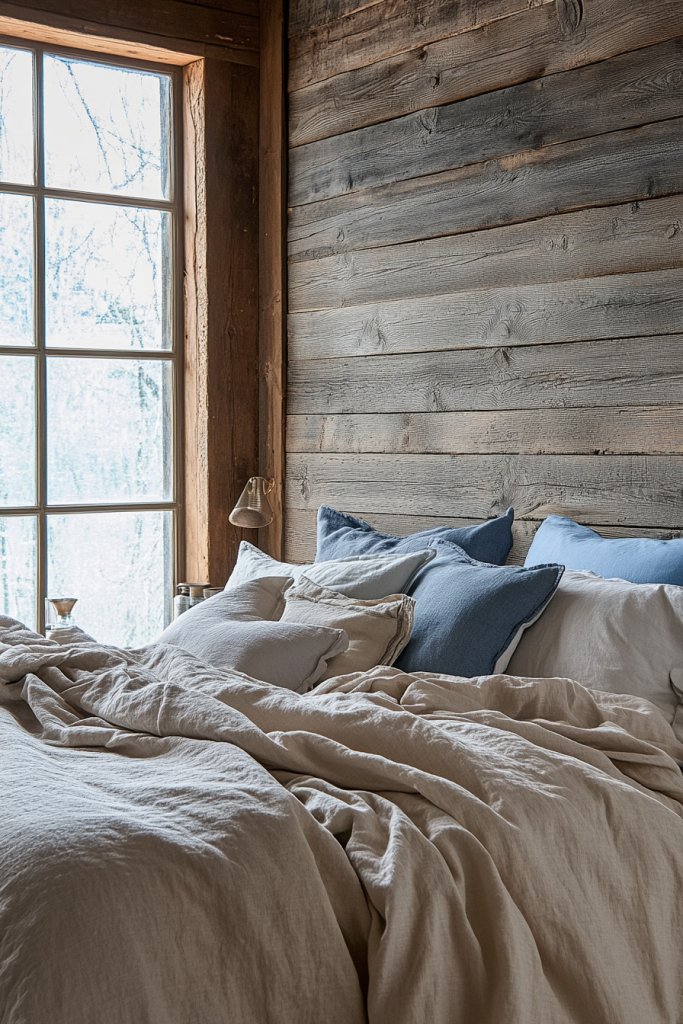 You can opt for full wall coverage or create accent panels behind the bed or along one wall. The wood can be painted in white or soft pastel shades to brighten the space or left raw for a more rugged appeal. Incorporate different widths and lengths of planks for visual interest. Seasonal accents like cozy throws or light-colored bedding can refresh the look without changing the core material.