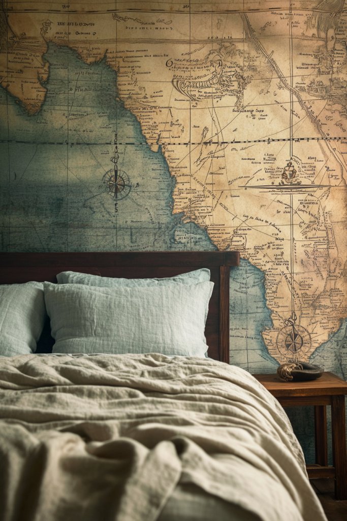 6. Incorporating Nautical Chart Wall Murals for a Travel-Inspired Vibe