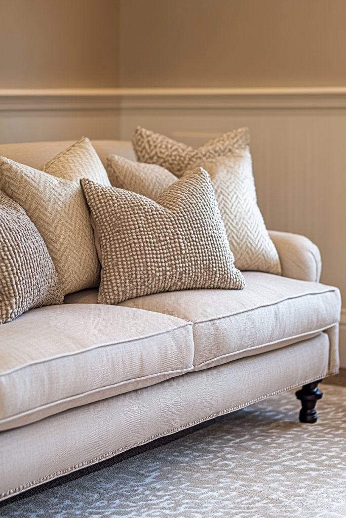 1. Elegant Beige Sofa with Textured Throw Pillows
