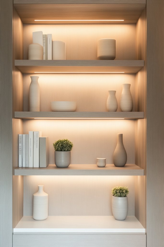 Vary shelf heights and depths for visual interest. Mix open and closed storage to hide away less attractive items. Incorporate textures like woven baskets, ceramic dishes, or fabric-lined boxes in neutral shades. Keep accessories minimal to maintain a streamlined appearance, and change displays seasonally for freshness.