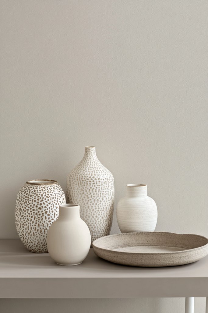 17. Neutral Color Palette Decorative Accents in Vases and Trays