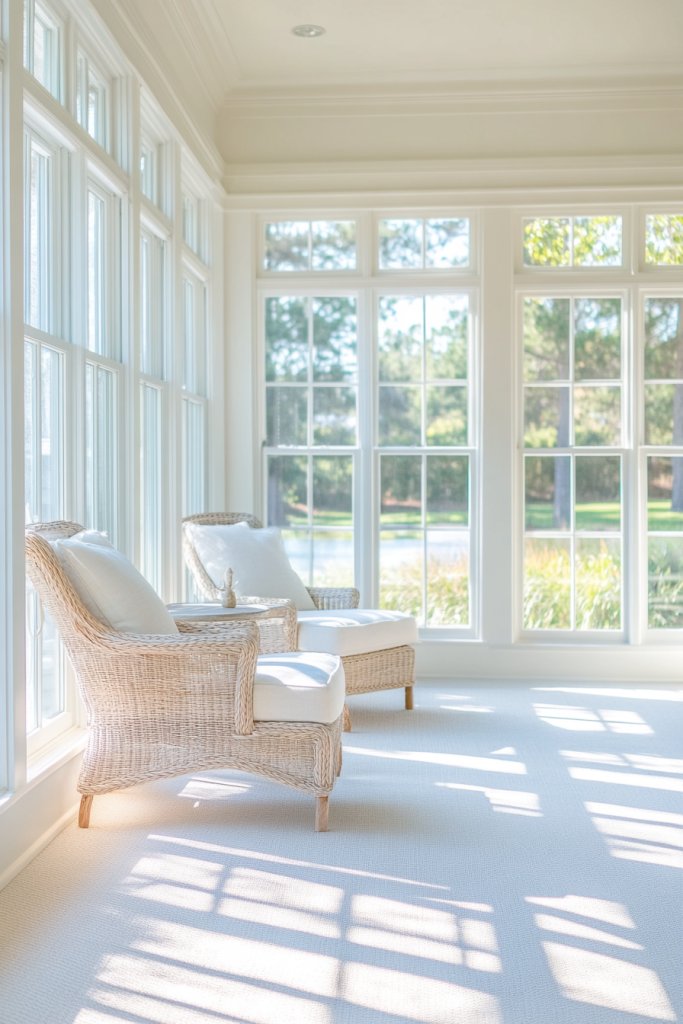 A coastal-inspired oyster sunroom offers a tranquil escape that’s both stylish and functional. It’s a versatile palette that adapts easily to different decor elements. Creating this space boosts your mood and makes every day feel like a mini vacation—who wouldn’t want that?