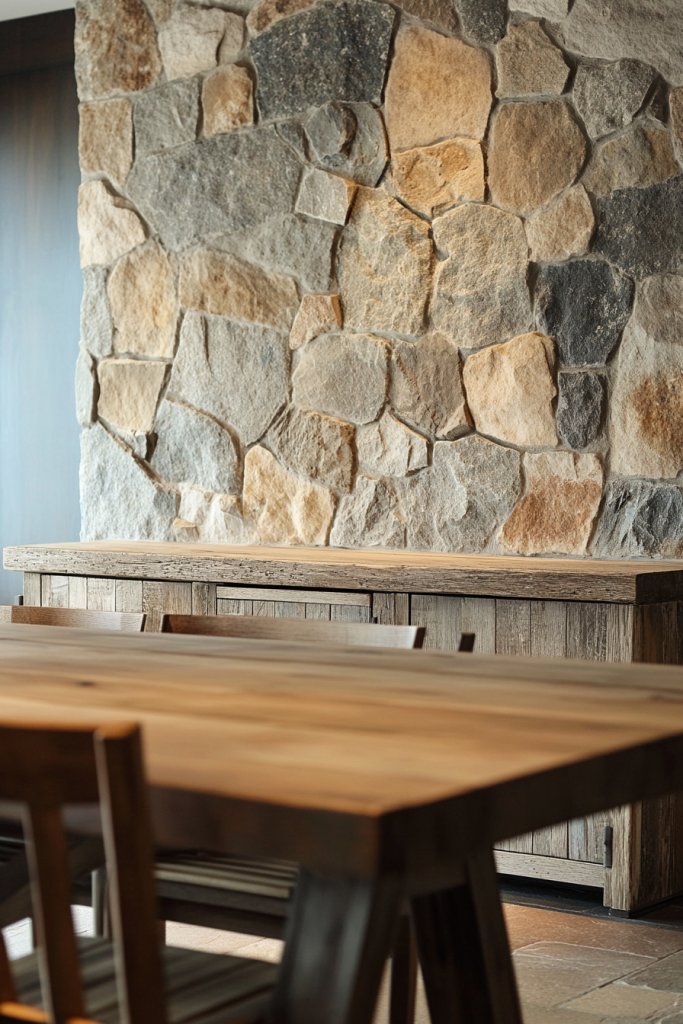 Ever wish your dining space had a touch of rustic charm without veering into overly country or rugged? Natural stone brings that earthy authenticity while maintaining elegance. It’s perfect for adding texture and grounding the room in nature, especially if you love a bit of rugged sophistication.