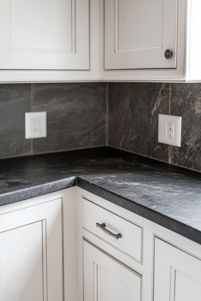 Picture crisp white cabinets with deep, dark granite or quartz countertops. The contrast draws the eye and highlights the clean lines of your cabinetry. Textured countertops like marble or concrete add tactile interest, while the white surfaces keep the look fresh. The interplay of light and dark creates a dynamic environment that feels sophisticated and inviting.