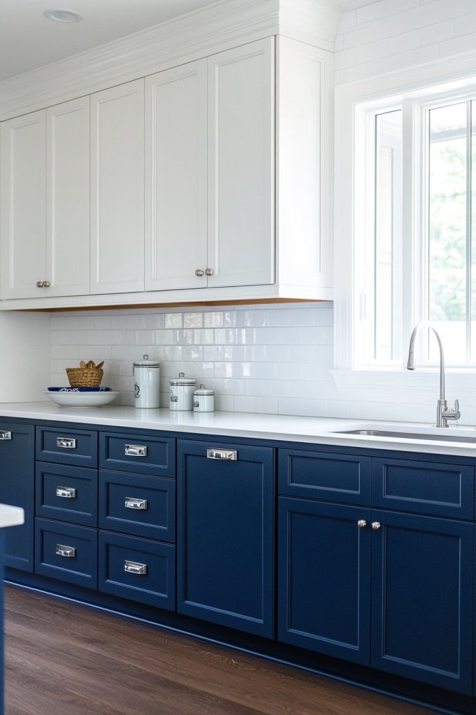 12. Two-Tone White and Navy Blue Cabinets for a Nautical Vibe