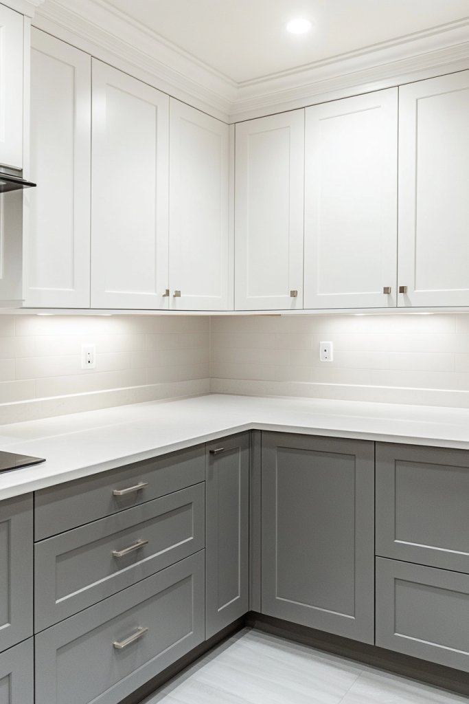 4. Two-Tone White and Soft Gray Cabinets for Subtle Contrast