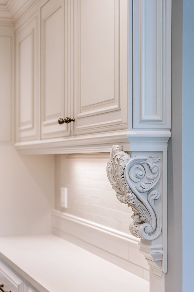 9. White Cabinets with Decorative Molding for Architectural Interest