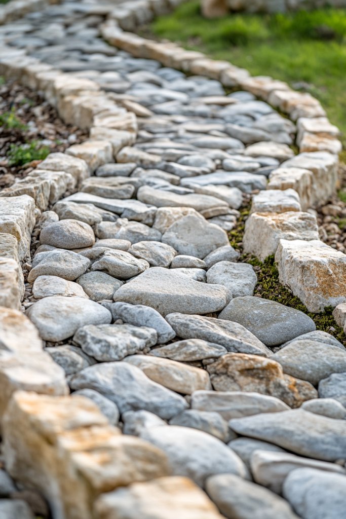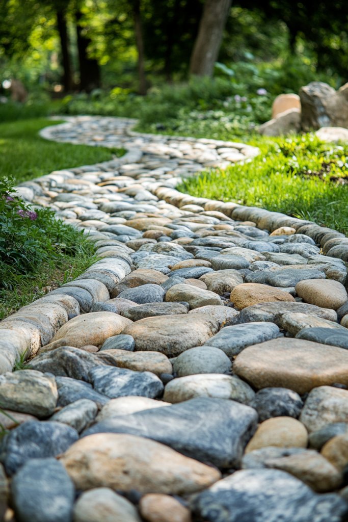 15. Enhancing Pathways with Layered River Rock Borders