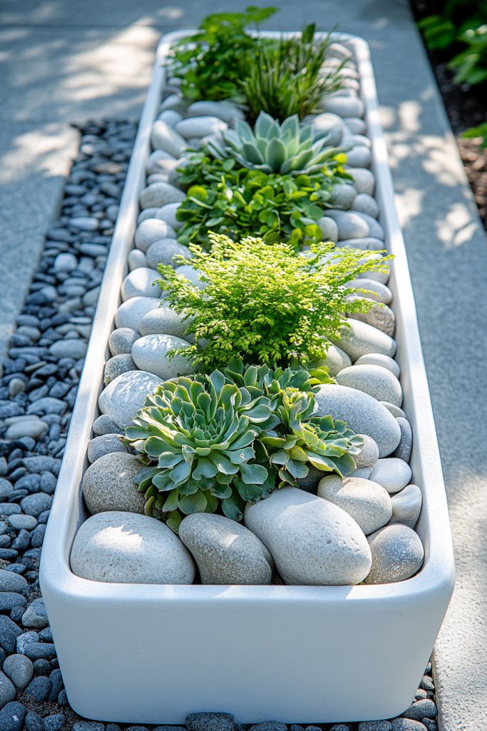 11. Incorporating River Rock Planters for a Modern Touch