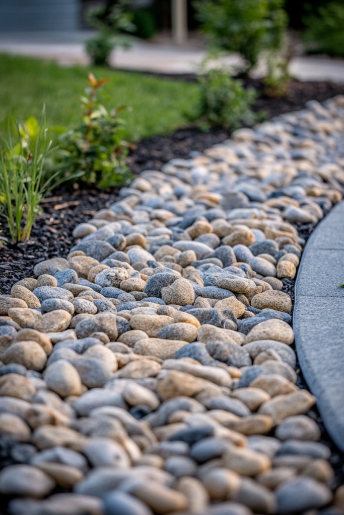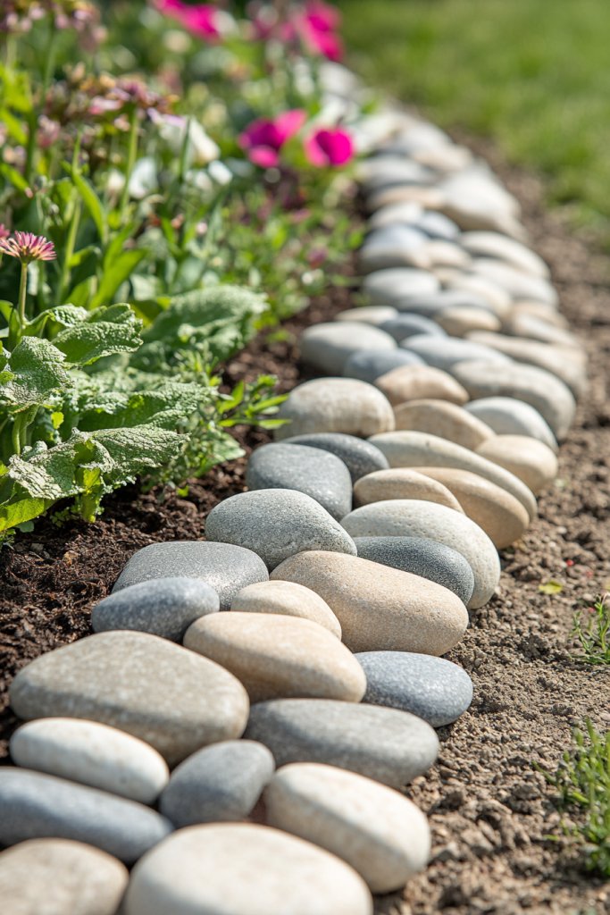 13. Lining Garden Edges with River Stones for a Clean Finish