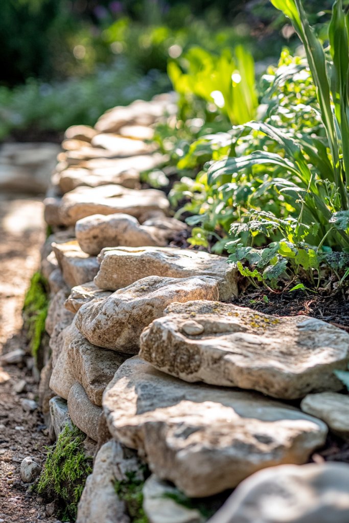 An elevated rock seating area combines practicality with aesthetic appeal, creating a perfect outdoor lounge. It’s a durable solution that ages beautifully and requires minimal upkeep. Once built, it becomes a favorite gathering spot for friends and family. Ready to sit back and relax? Start stacking stones today!