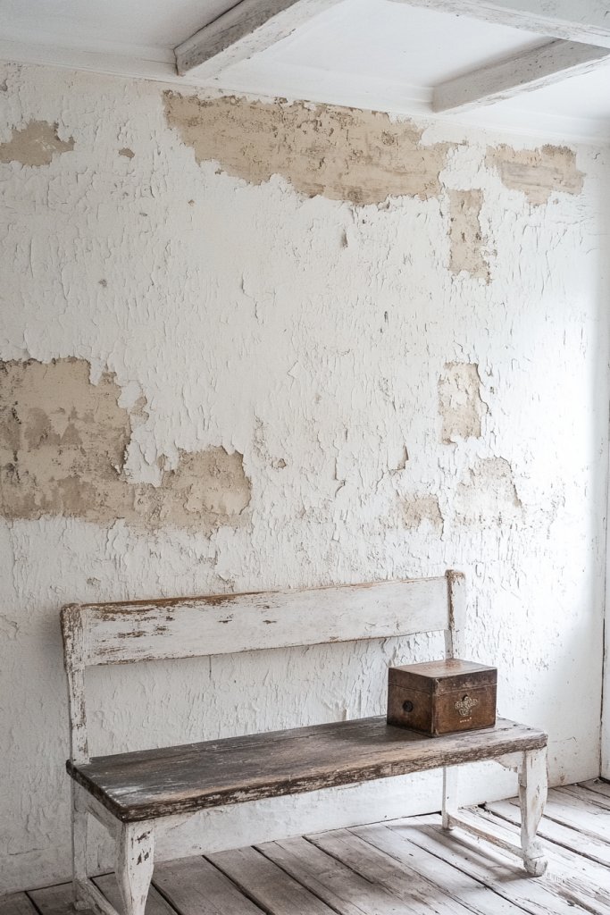 10. Distressed Whitewashed Walls for Bright, Rustic Vibe