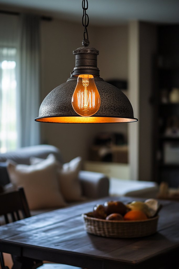 Lighting sets the mood, but standard fixtures can feel boring or out of place in a rustic farmhouse. Vintage-inspired pendant lights with Edison bulbs bring warm, nostalgic illumination that’s both functional and decorative. They add a focal point and personality without overwhelming your space.