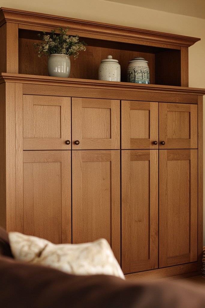 Shaker cabinetry is a classic choice that offers both beauty and practicality. It’s easy to customize and fits effortlessly into rustic farmhouse decor. Once installed, it transforms clutter into curated charm, making your living space more functional and inviting.