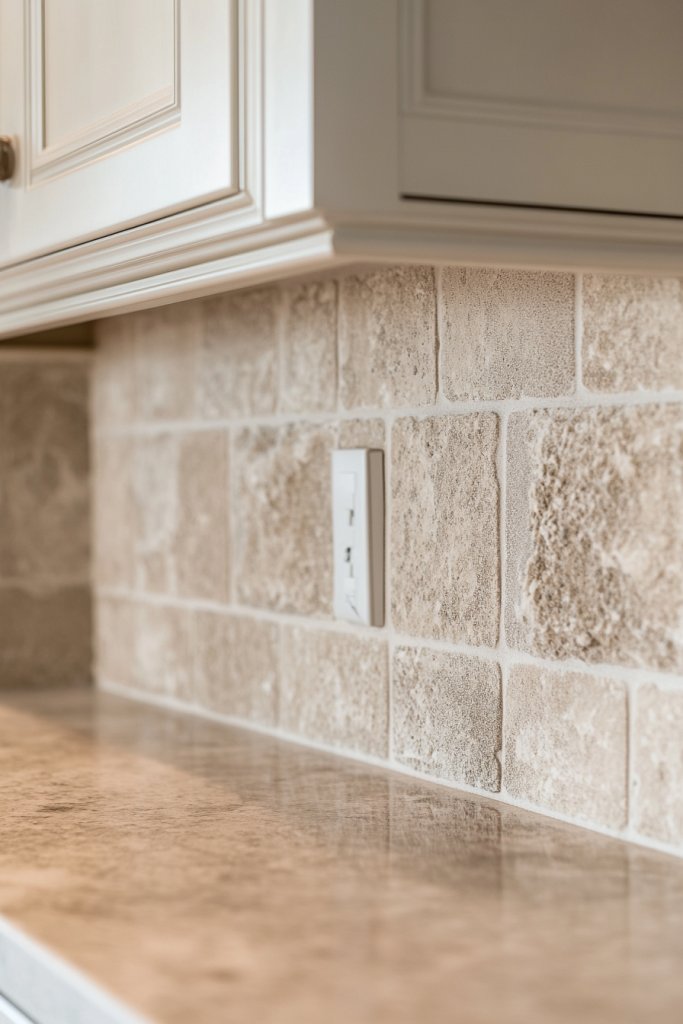 Imagine a wall of soft beige or light gray tiles with a tactile, textured surface—like gentle waves or subtle geometric patterns. The textured tiles catch light differently throughout the day, creating shadows that add visual interest. The neutral palette complements your cabinetry, countertops, and overall decor, tying everything together seamlessly. The result is a sophisticated backdrop that’s both calming and engaging.