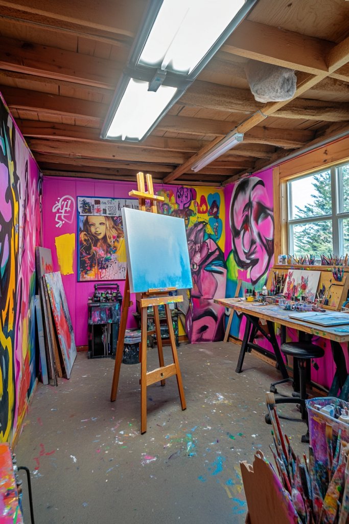 11. Artistic Studio with Murals, Easels, and Inspirational Decor