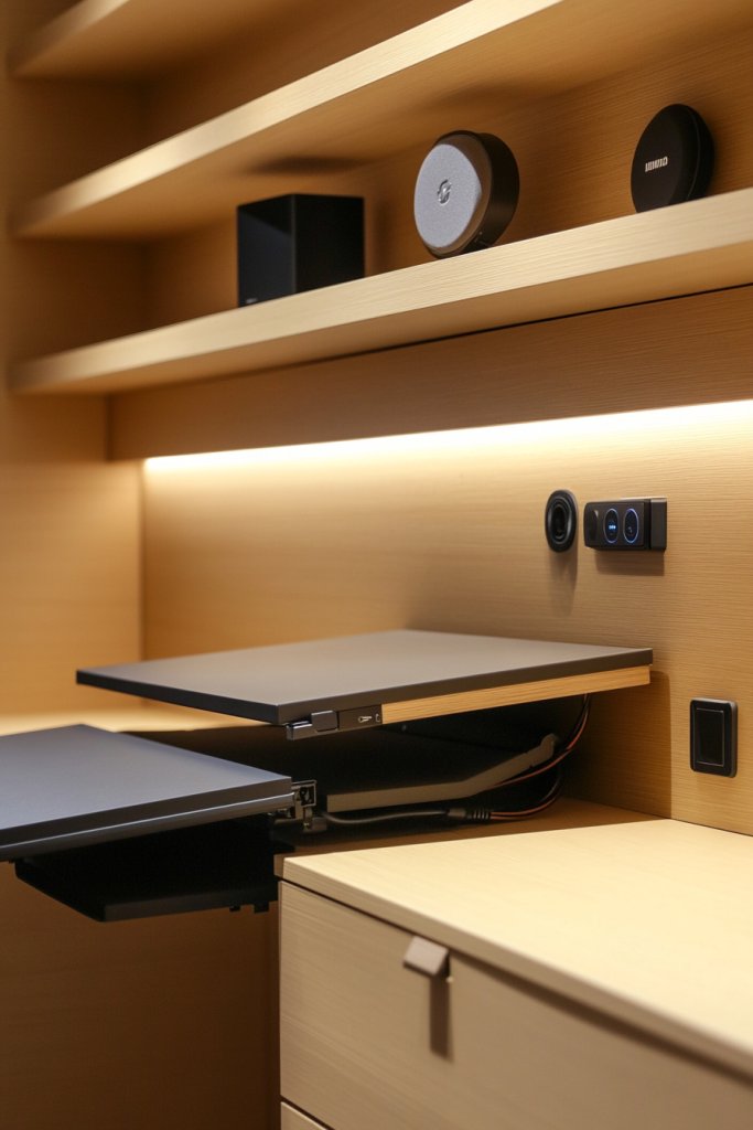 15. Tech-Savvy Workspace with Smart Storage and Multi-Functional Furniture