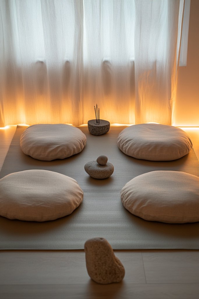 5. Serene Zen Space with Floor Cushions and Natural Materials