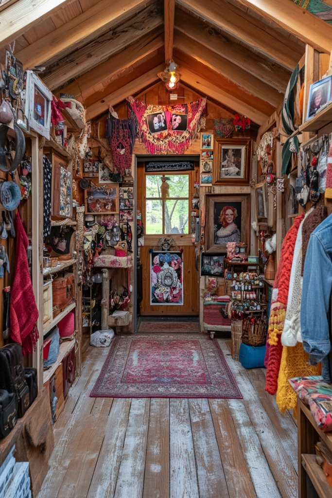 Emphasize more bold patterns or tone it down with a mix of vintage and modern pieces. Seasonal updates include swapping textiles for brighter or softer options. For small sheds, use multi-functional furniture or vintage storage units to maximize space. Personal touches include collecting retro memorabilia or displaying vintage record collections.
