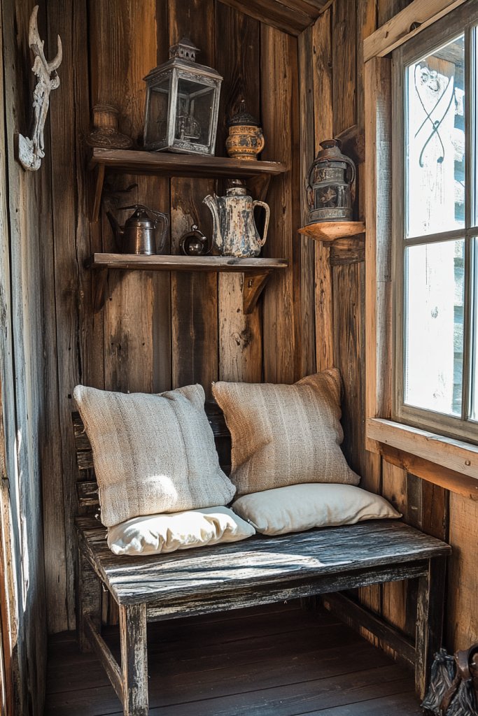 Make it yours by displaying nostalgic collectibles or family heirlooms. Incorporate handcrafted touches like braided rugs or stitched textiles. Use a mix of textures—rough wood, soft fabrics, and metal—to keep the space engaging. Seasonal accents, like pinecones or wreaths, add charm without overwhelming the rustic vibe. Personalize further with DIY projects that reflect your history and personality.