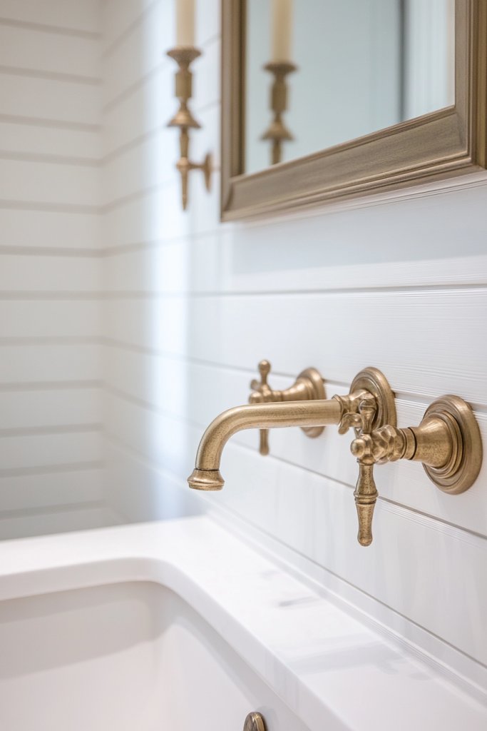 Choose between painted or stained shiplap depending on your decor. For a more refined look, opt for natural wood tones; for a bold statement, go dark or painted in contrasting colors. Pair with vintage brass or bronze fixtures to complete the look. Use decorative trim or beadboard accents to add layers of detail. This style adapts well to both small powder rooms and larger master baths.