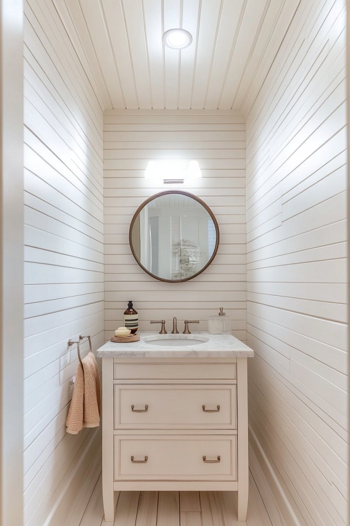 5. Shiplap Accent Wall Behind the Vanity for Focus