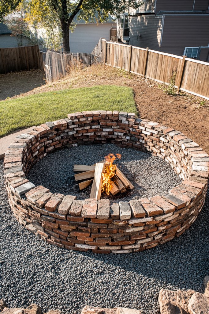 Use different brick styles or colors for a unique look—perhaps reclaimed red bricks or gray concrete blocks. Build a simple, portable fire pit or a more permanent structure with a raised seat. During colder months, add decorative stones or metal accents. For safety, keep a bucket of water or fire extinguisher nearby.