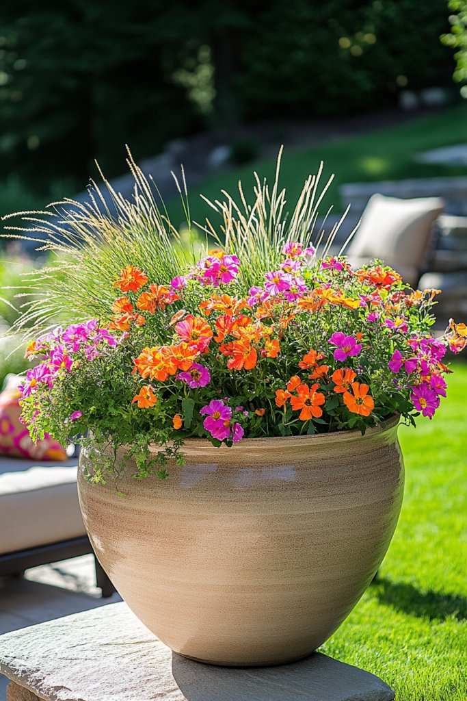 Picture oversized ceramic or plastic pots filled with vibrant flowers, ornamental grasses, or even small trees. These containers act as natural dividers, creating cozy seating nooks or garden rooms. The plants sway gently in the breeze, adding movement and life. Their colors and textures draw the eye and anchor different zones beautifully.