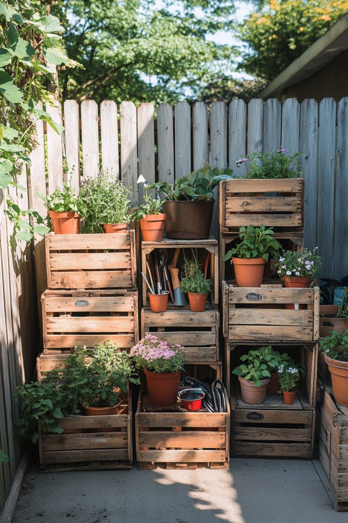 Wooden crates are simple, budget-friendly, and endlessly customizable. They turn clutter into charm and offer both practical storage and decorative appeal. With a bit of creativity, your yard becomes more organized and inviting—showing that a little DIY effort goes a long way.