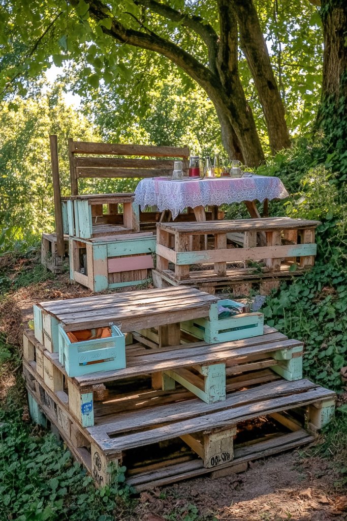 4. Design a Compact, Multi-Level Seating Area with Free Pallet Furniture