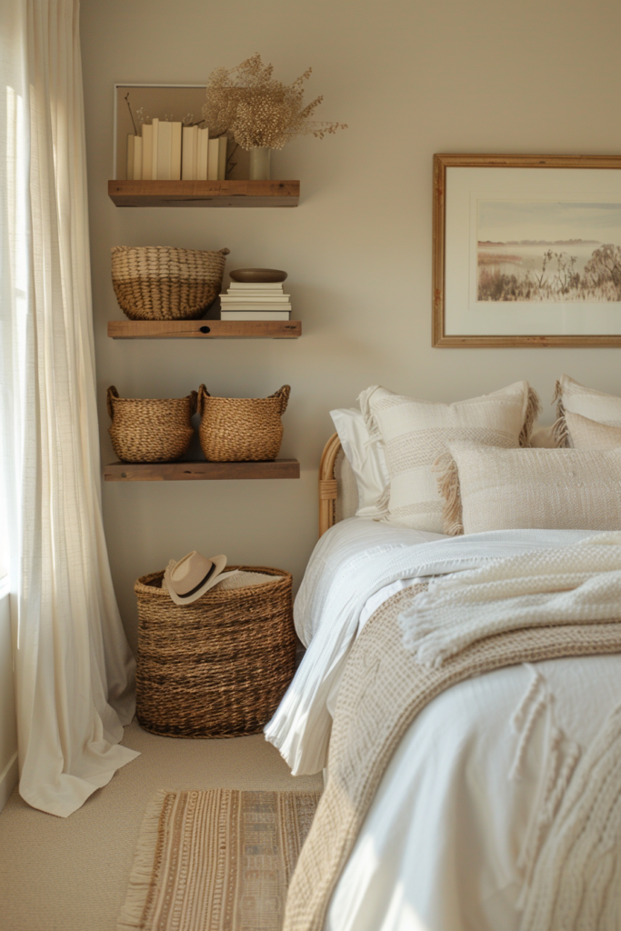 Incorporating baskets into your bedroom design not only maximizes storage but also enhances the aesthetic appeal, proving that practicality and style can coexist effortlessly.