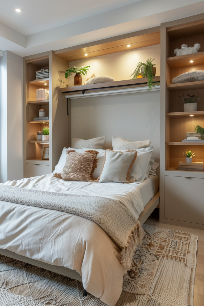 A Murphy bed can transform your small bedroom into a multifunctional oasis, effortlessly blending style and practicality. This clever piece of furniture folds up against the wall, freeing up valuable floor space during the day. You can easily create a cozy reading nook, a workspace, or even a mini-gym without the bulk of a traditional bed taking over your room.
