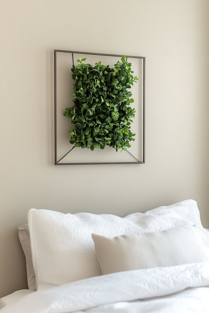 Imagine sleek wall-mounted boxes with faux succulents or minimalist sculptural elements that resemble greenery. The textured surfaces and muted tones blend seamlessly into your decor, creating a subtle statement. Arranged in a geometric pattern or a vertical line, these planters add depth and dimension to your walls. The overall look is modern, fresh, and effortlessly chic.