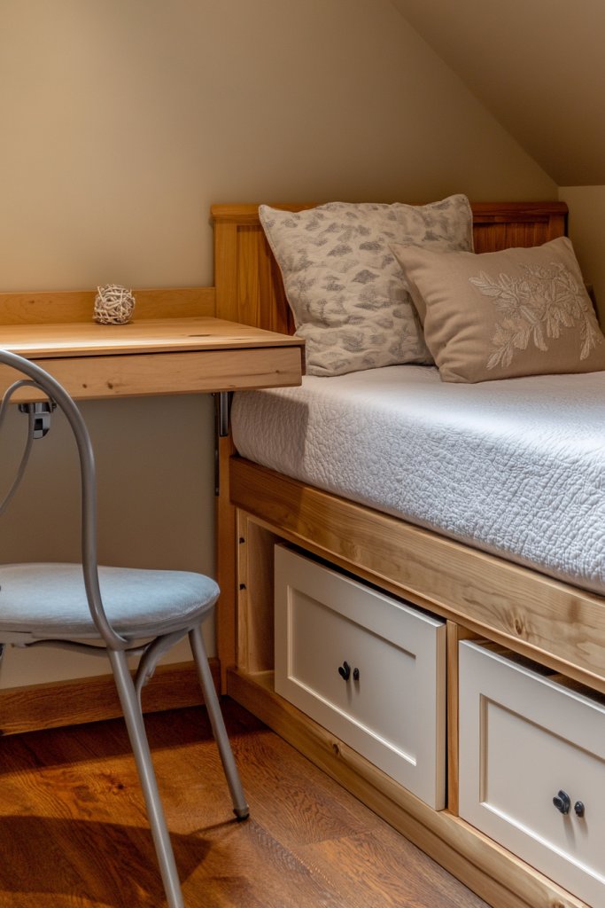 A fold-down desk proves that small spaces can be highly functional with clever design. It encourages you to create dedicated zones within your room, boosting your productivity. Once you experience the freedom of a versatile workspace, you’ll feel inspired to maximize every inch of your home. Your room will become a hub of efficiency and style.