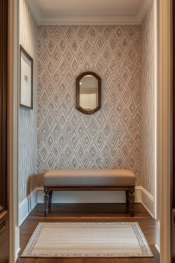 Your entryway might lack personality and feel flat. A statement wall with textured paint or wallpaper can transform the space into a focal point that wows guests. It adds depth and visual interest without cluttering the floor or surfaces. Who says small spaces can’t make a big style splash?