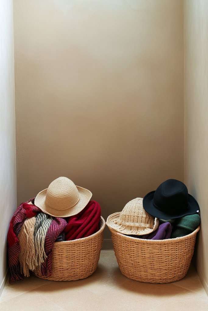 12. Use Functional Baskets or Bins for Seasonal Accessories