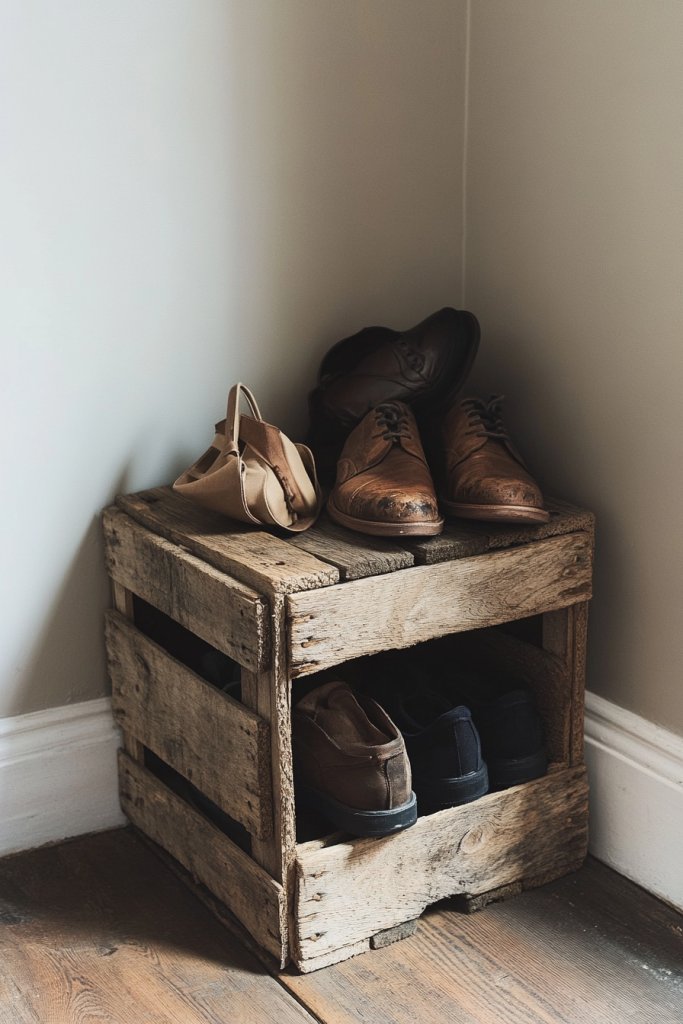 15. Place a Creative, Upcycled Crate or Pallet for Storage
