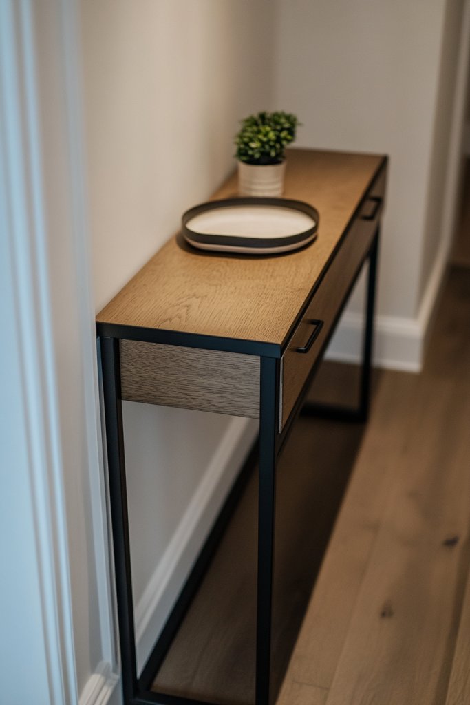 A compact console with hidden storage transforms a cluttered entry into an organized, stylish statement. It proves that small spaces can serve big functions without sacrificing design. With this piece, you’ll greet visitors with a tidy, welcoming vibe every time. Ready to choose your perfect slim-storage hero?